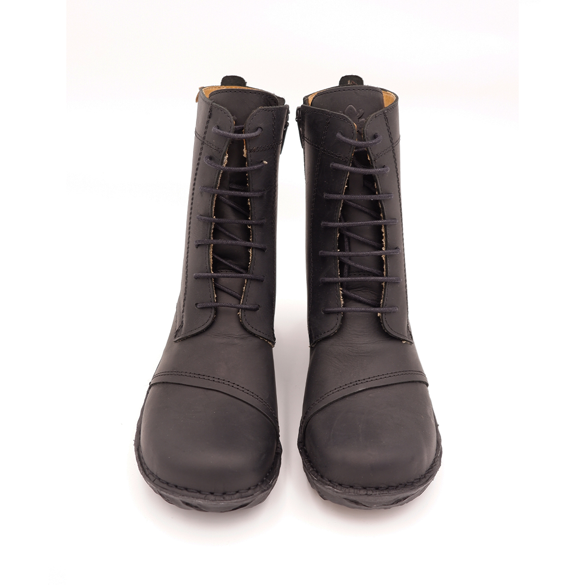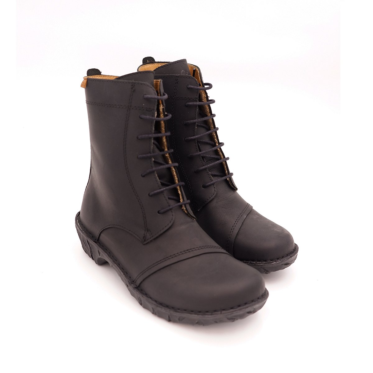 Anfibio con lacci e zip per facilitare la calzata con un fondo di gomma leggermente rialzato.
