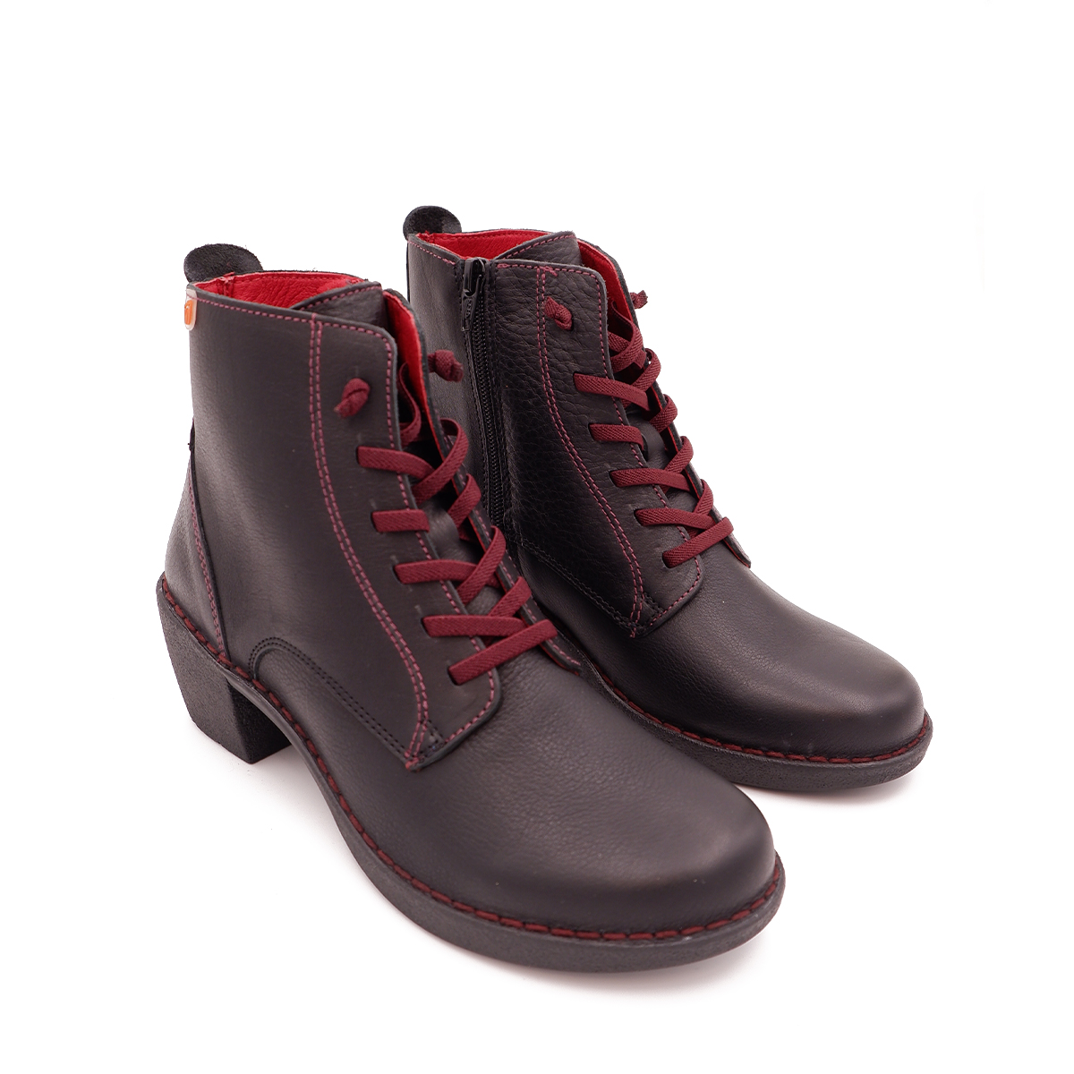 Anfibio con lacci ed elastico, la zip interna facilita la calzata e il pelle 100% accarezza il piede tutta la giornata.