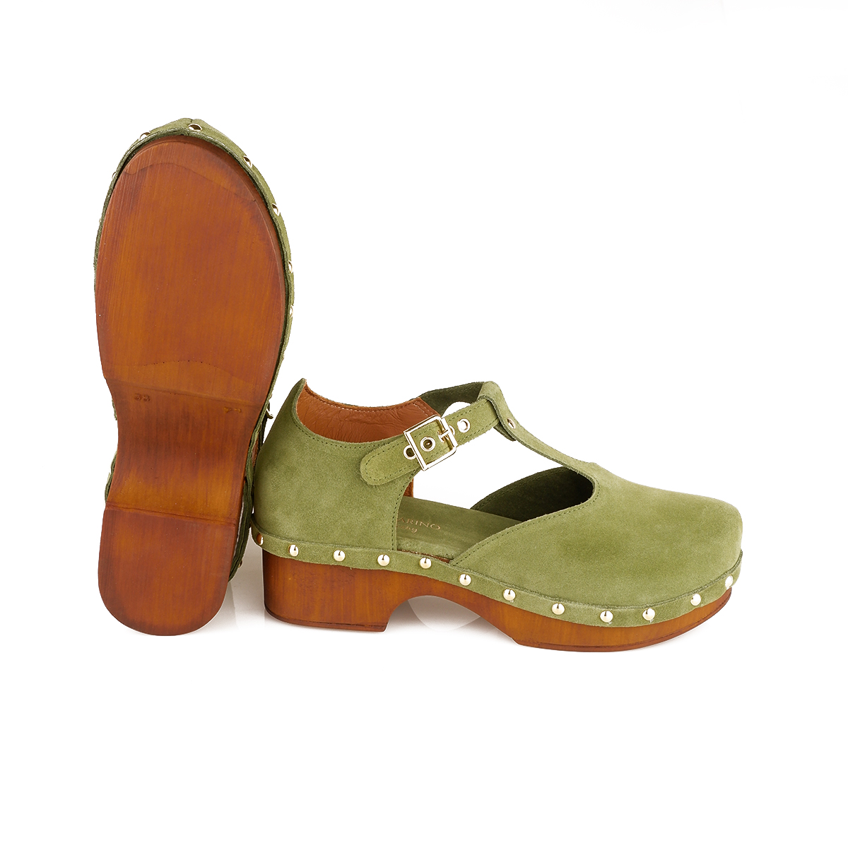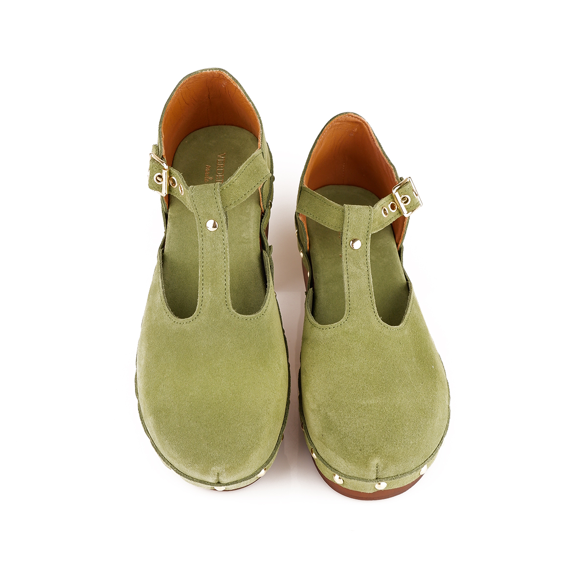 Comoda bambolina in pelle scamosciata dalle forme morbide e stilose.