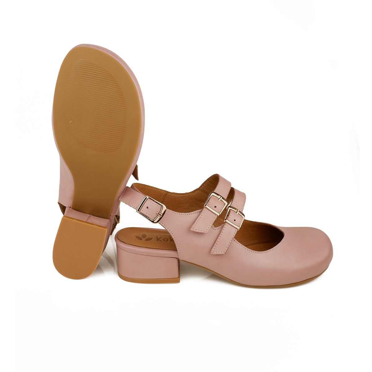 Modello chiuso in punta, a chanel con 2 cinturini e tallone scoperto.