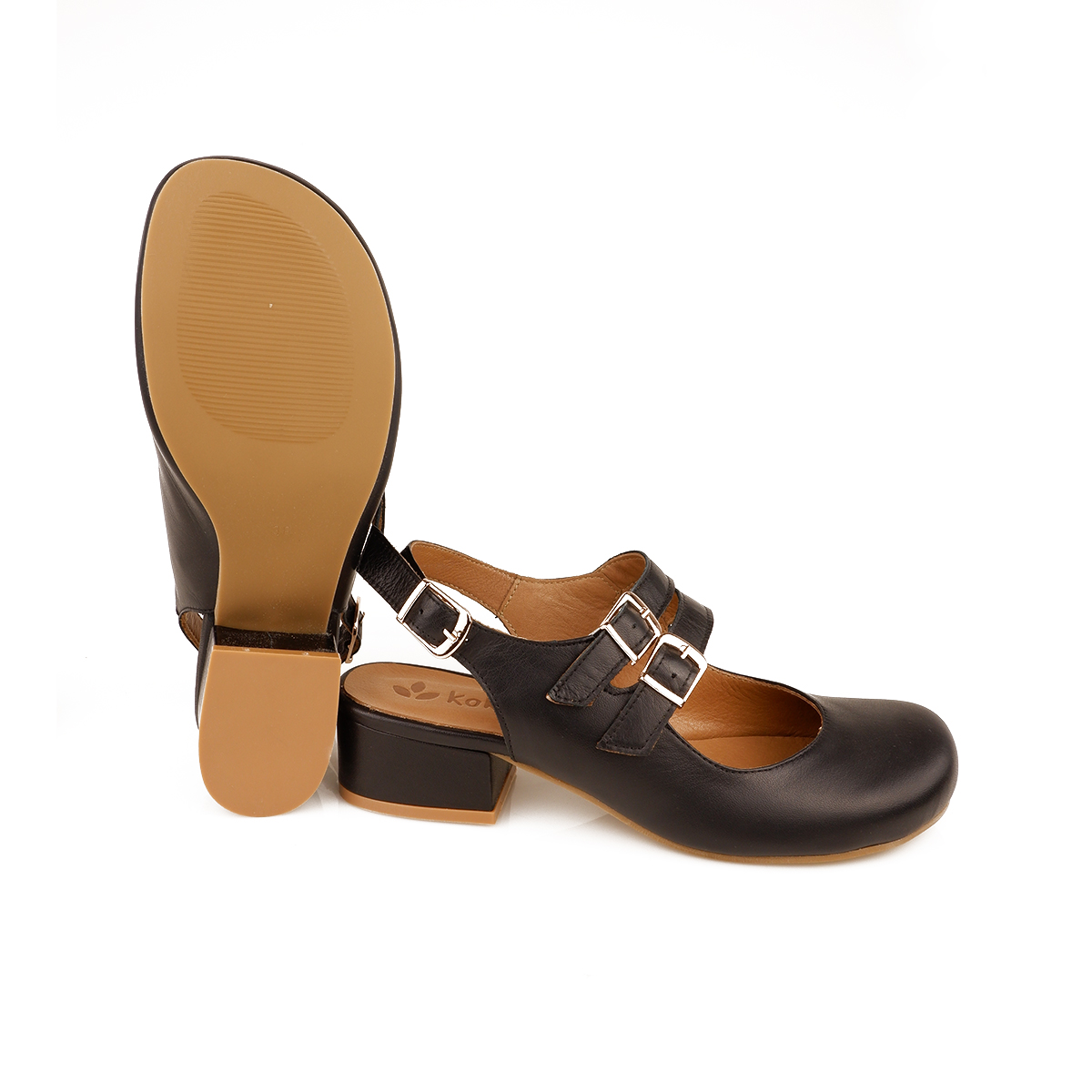 Modello chiuso in punta, a chanel con 2 cinturini e tallone scoperto.
