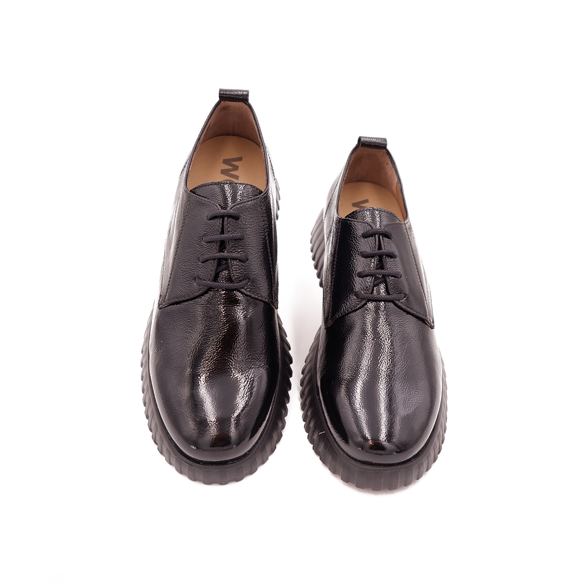 Questo modello è chiamato "derby", dai cmodi tipici 4 fori per i lacci e dalla morbida vernice di nappa.