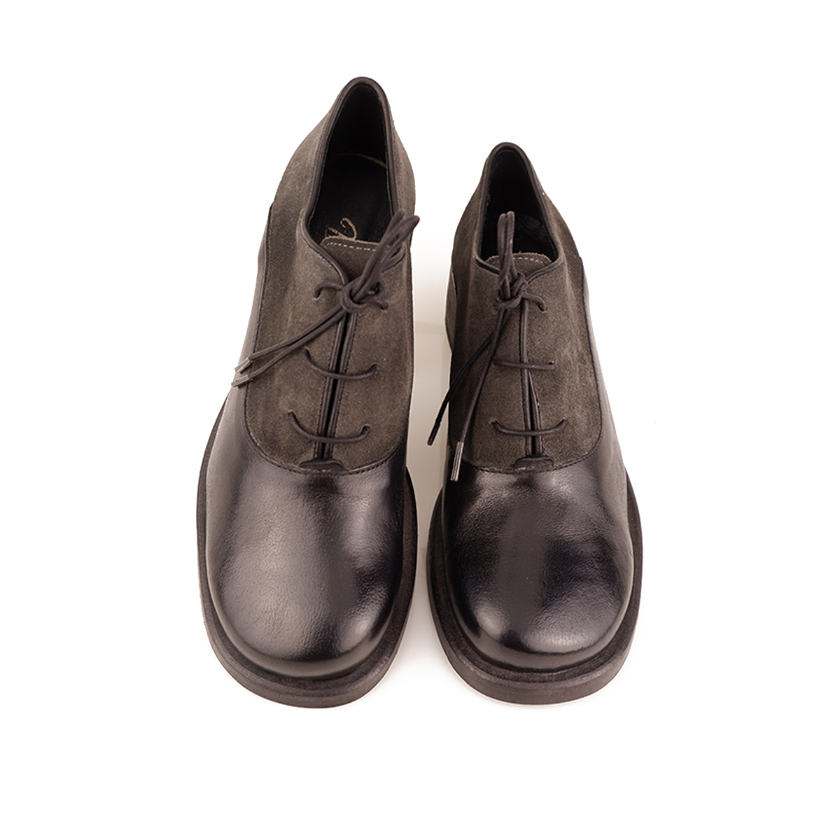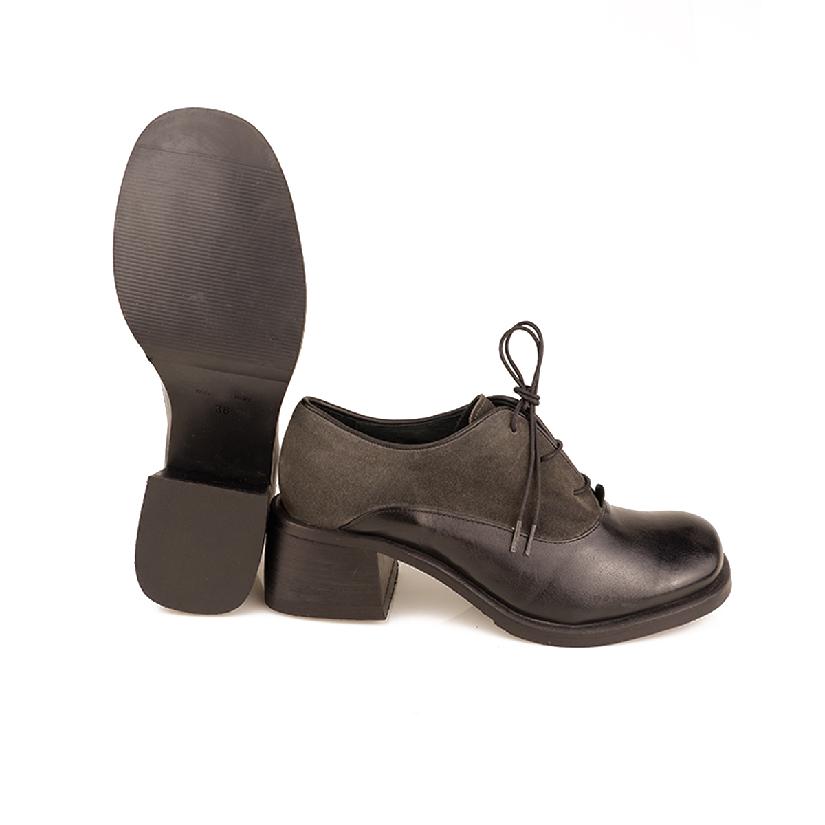 Francesina dalla forma rotonda dal gusto retrò con inserti in camoscio, tacco 50 e fondo gomma.
