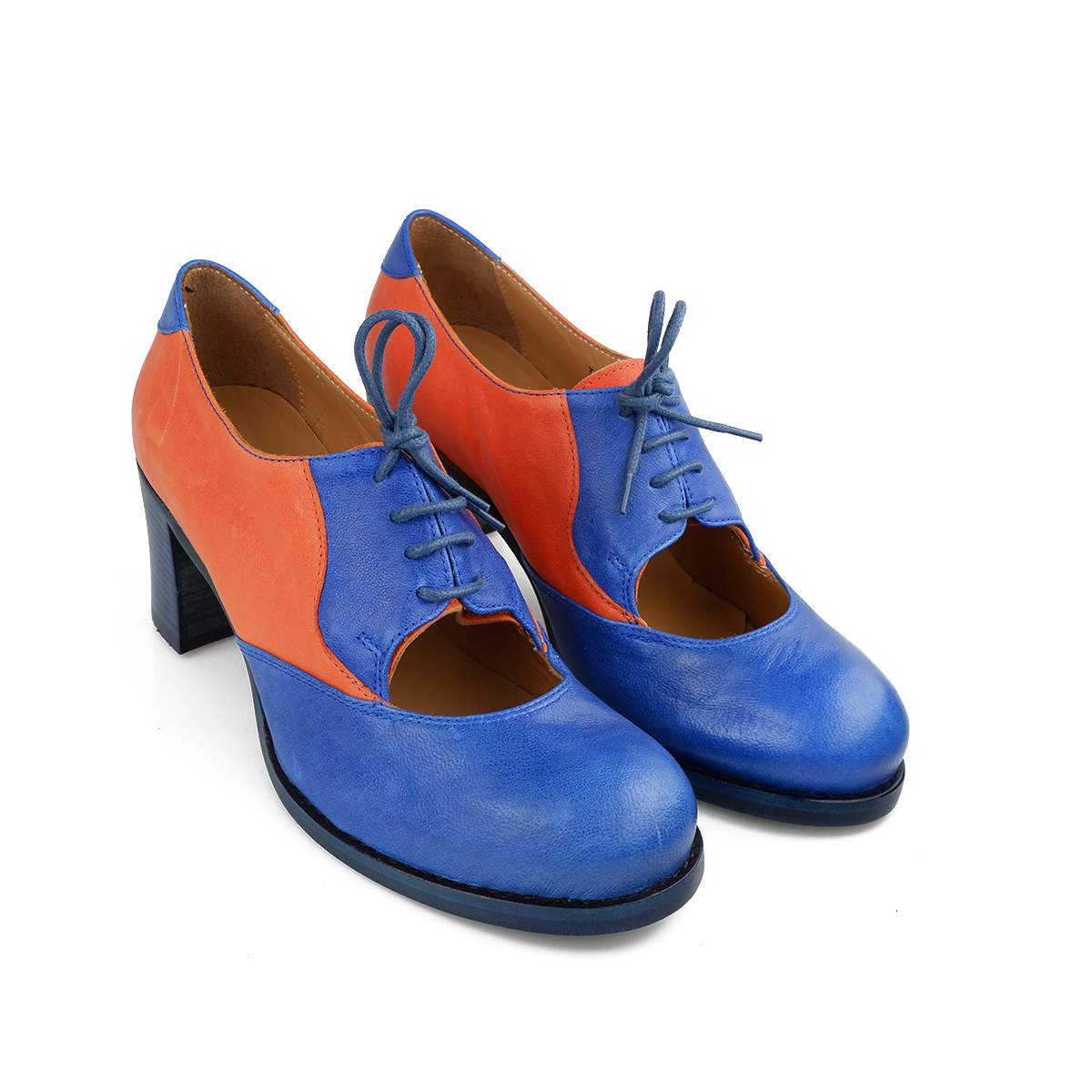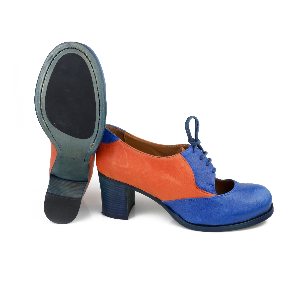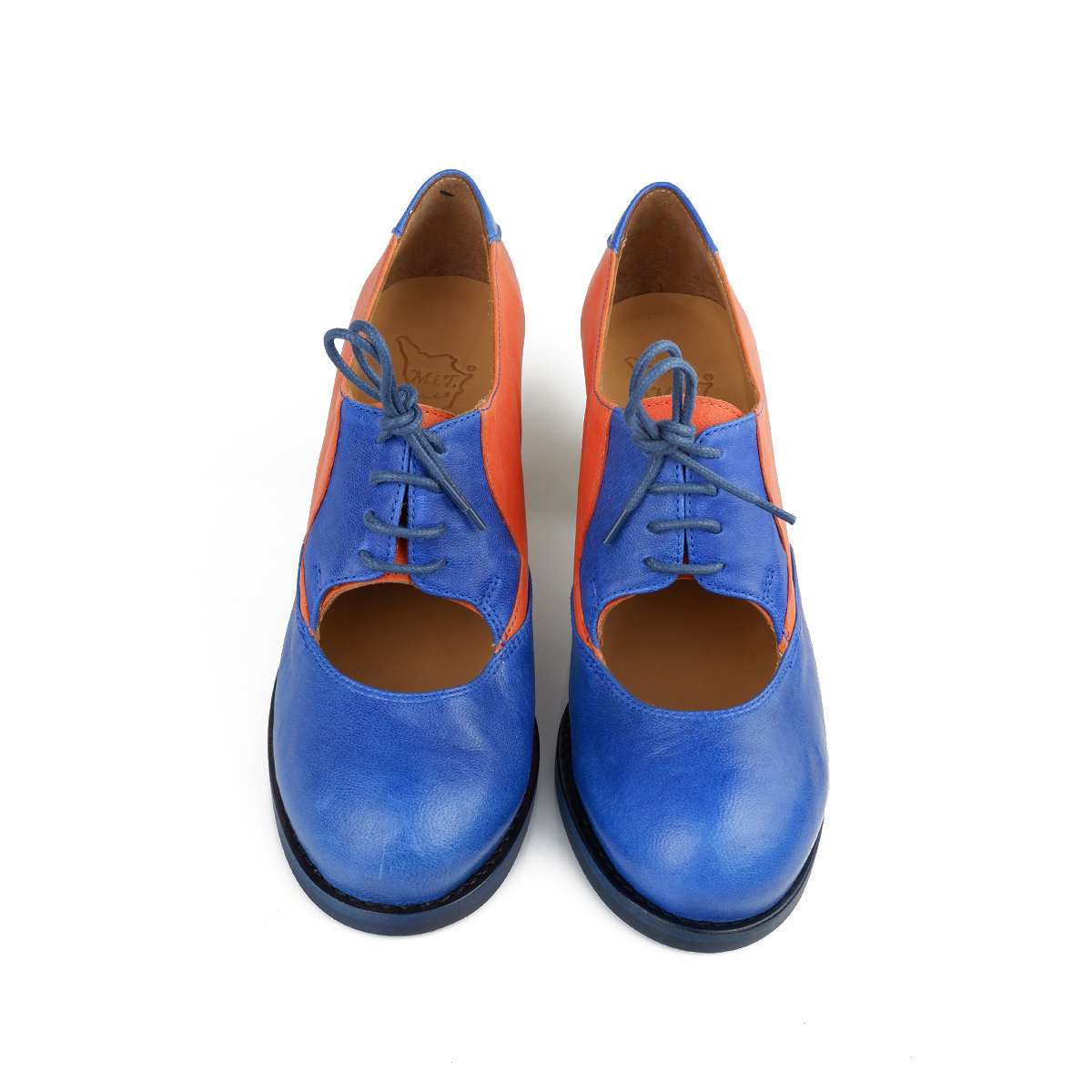 E' una fusione tra una scarpa allacciata e un decolté, dal sapore retrò con i suoi morbidi pellami disponibili bicolori e tricolori. Una francesina scollata su comodo tacco da 7 cm, dalla suola in cuoio ma con oliva in gomma interamente cucita, adatta per tutte le occasioni ma sempre con stile! Made in Tuscany al 100%.