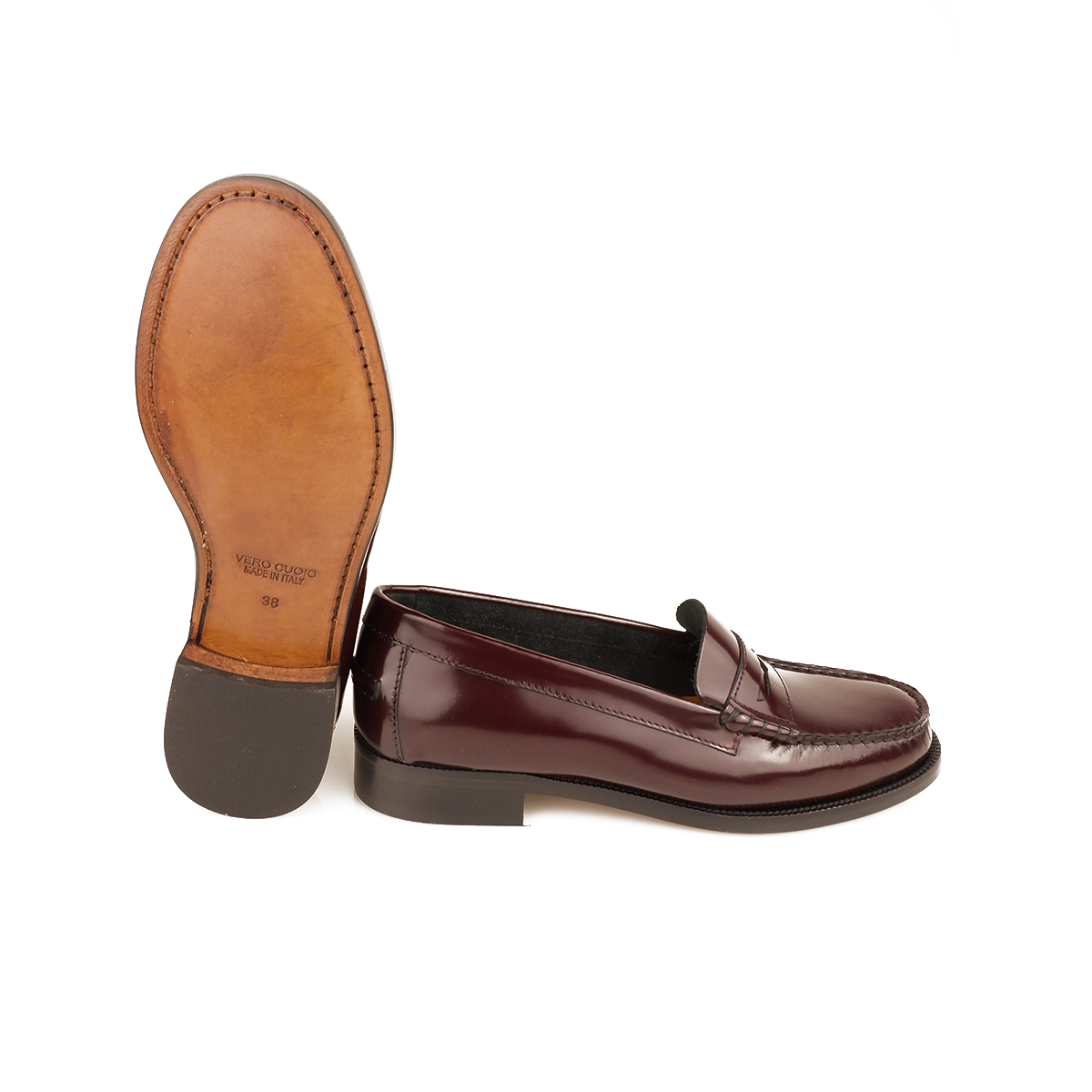 Mocassino con passante in pelle sfoderata e spazzolata, eseguito in cucitura a Blake.