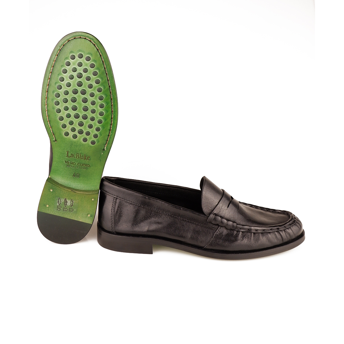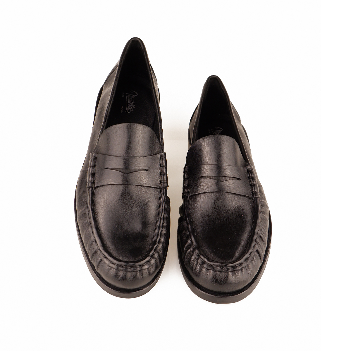 Mocassino in morbida pelle grinzosa, il fondo cuoio lo rende perfetto per le camminate primaverili.
