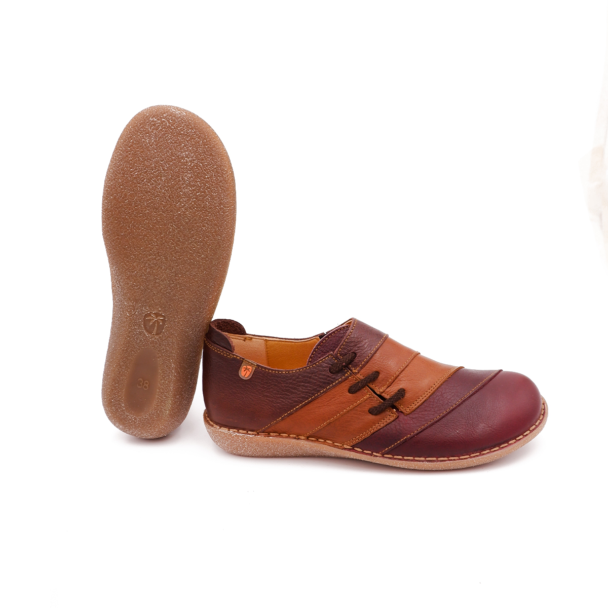 Pantofola slip on con lacci elasticizzati in 100% pelle così da coccolare il piede tutta la giornata.