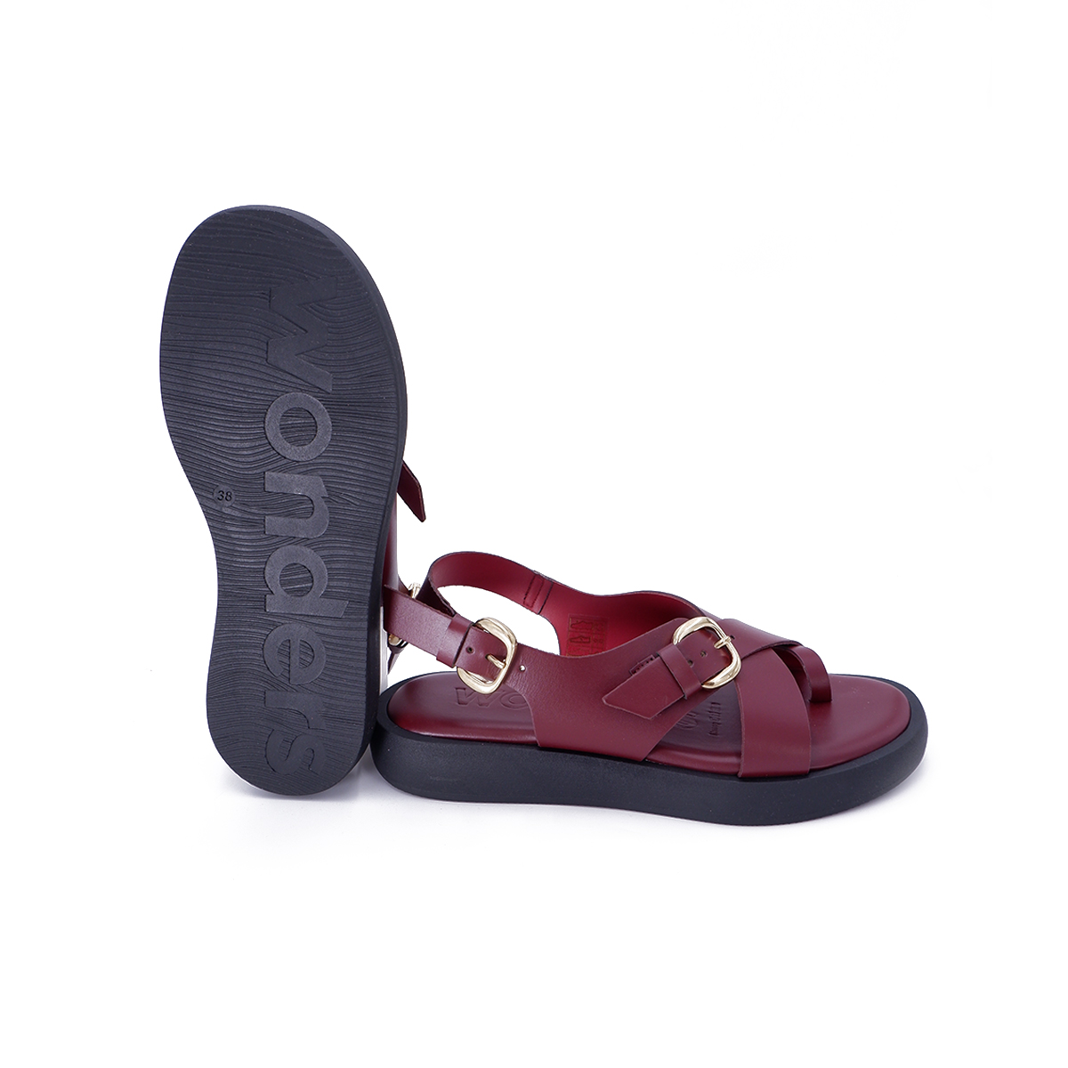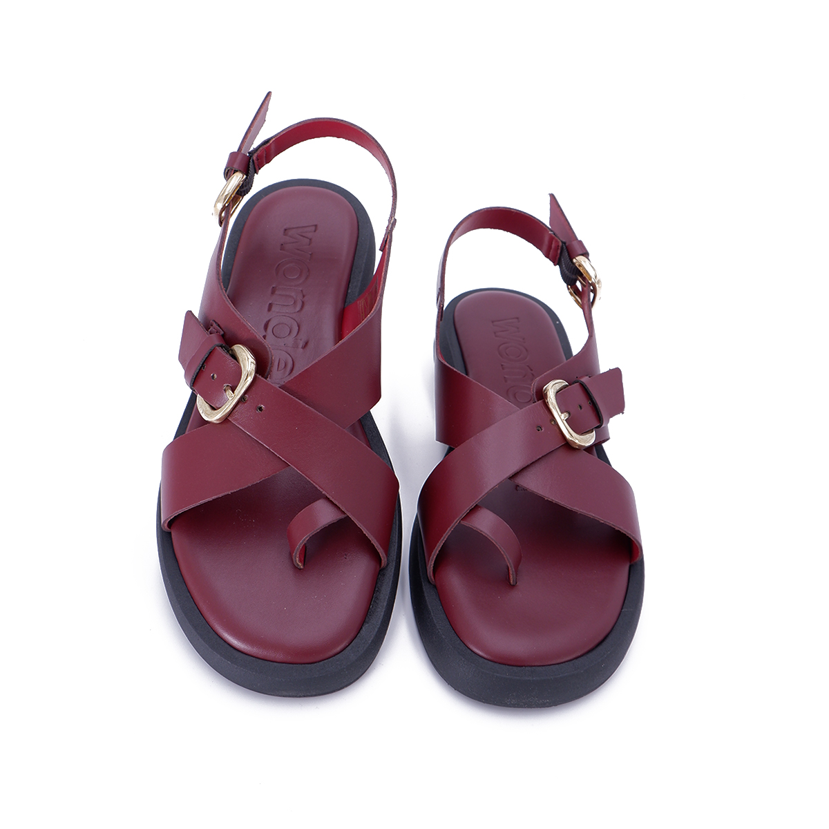 Sandalo infradito in pelle a due fibbie, con sottopiede imbottito.