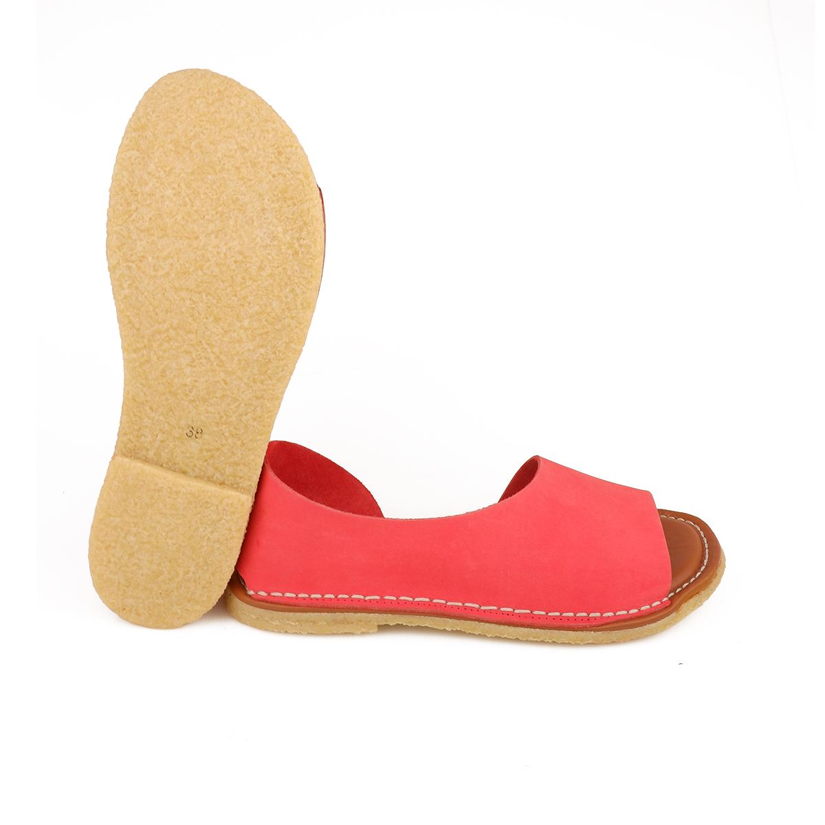 Sandalo asimmetrico aperto in punta in morbido camoscio.