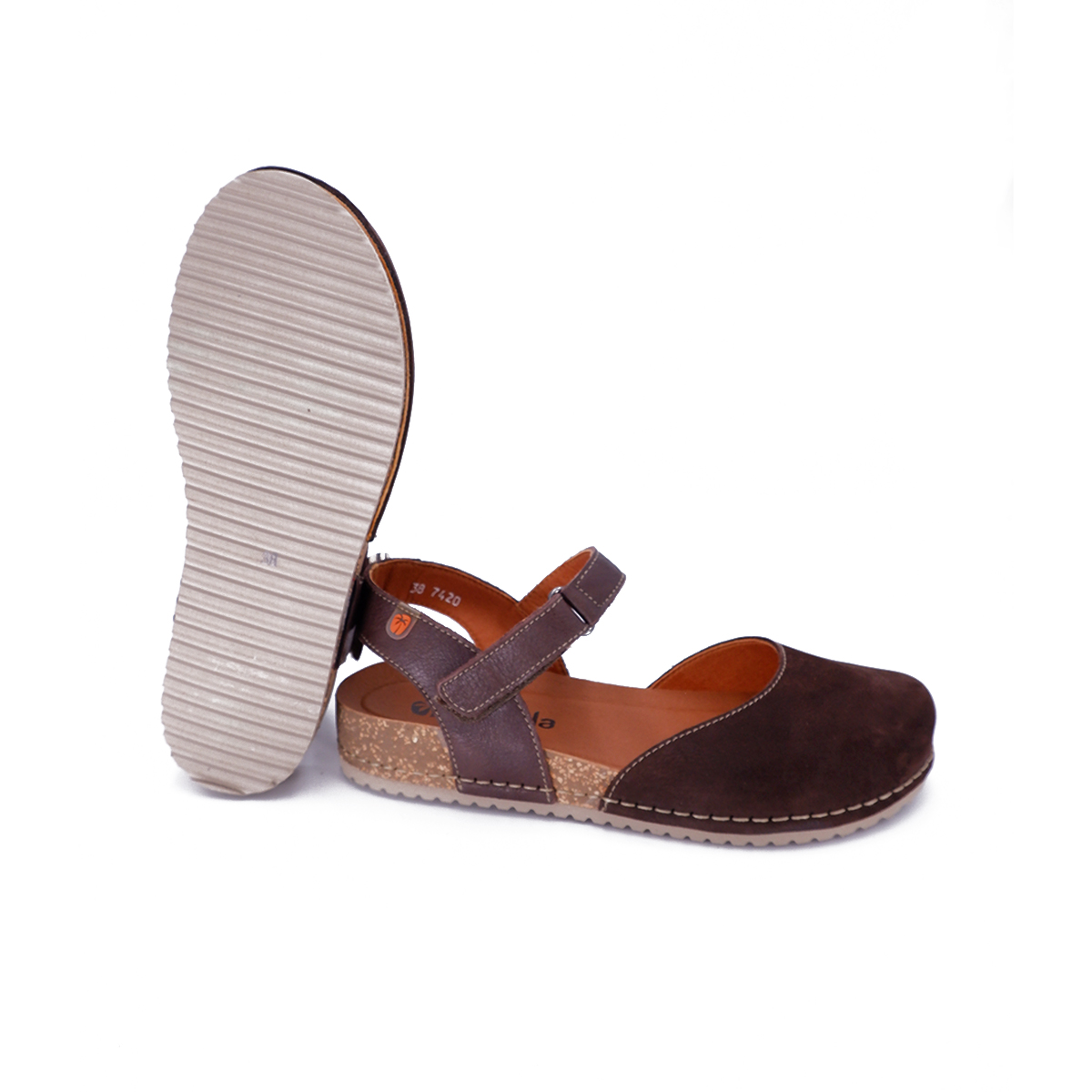 Sandalo punta chiusa con cinturino sul collo del piede a fermar il piede donando una calzata comoda.