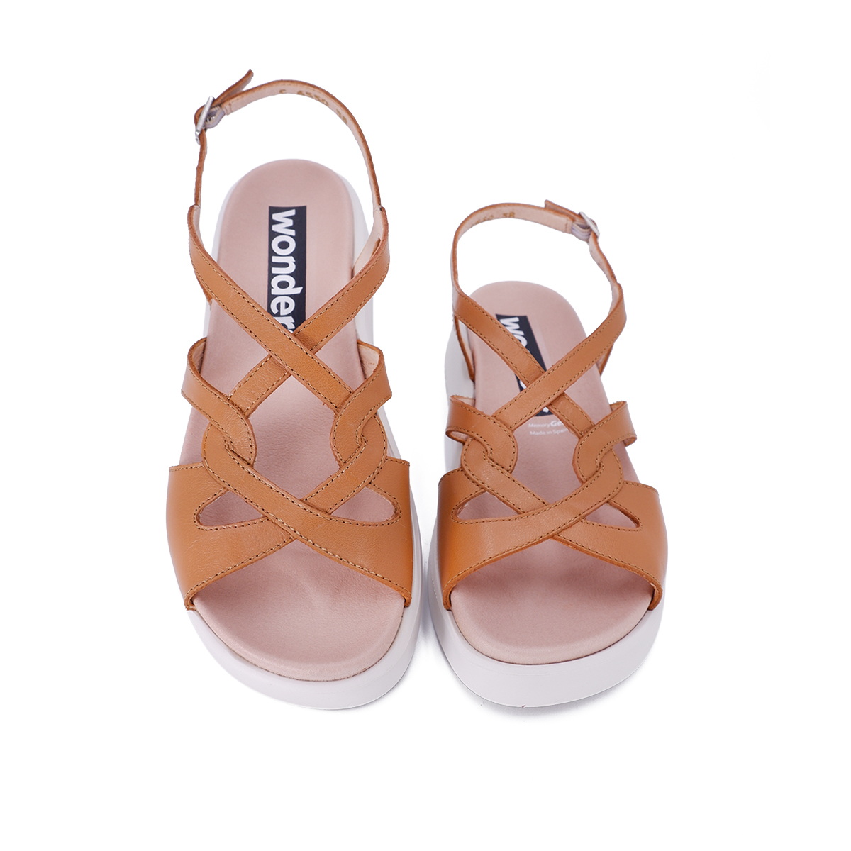 Sandalo incrociato in morbida pelle e sottopiede imbottito.