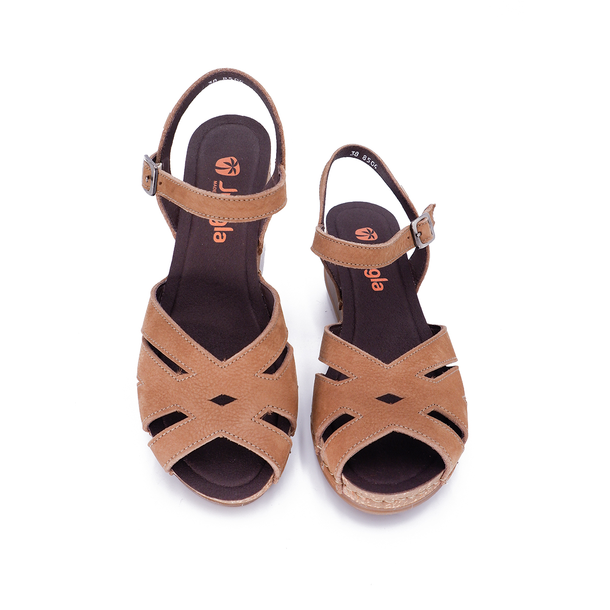 Sandalo con cinturino alla caviglia, fondo in gomma e tomaia in pelle conciata al vegetale a taglio vivo.