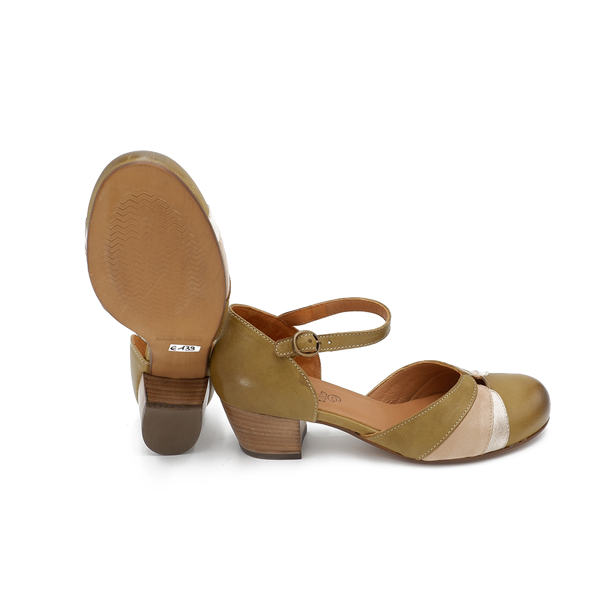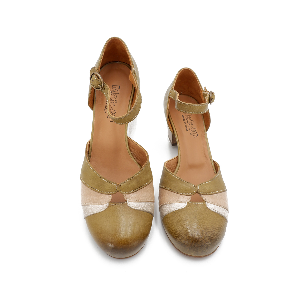 Scarpina aperta ai lati, dalla pelle morbidissima con cinturino alla caviglia.