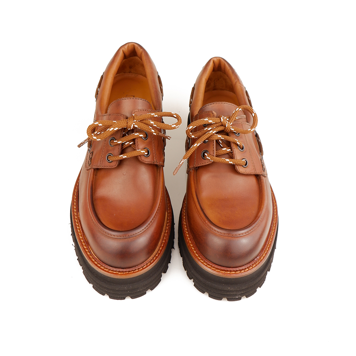Scarpa stile barca allacciata e dalla forma grintosa.