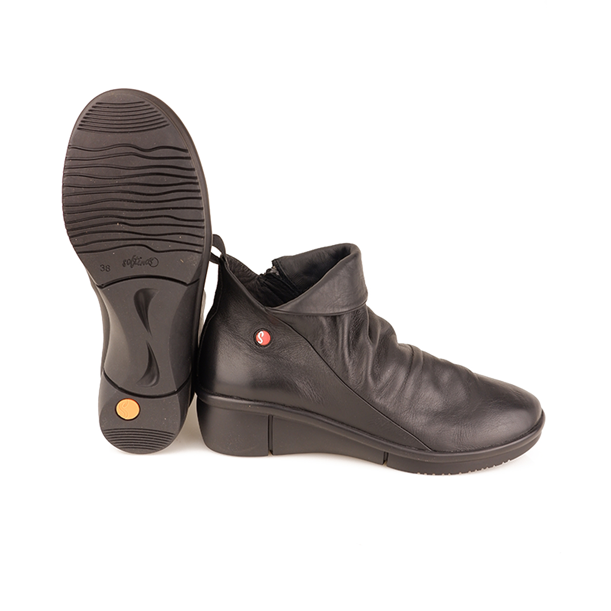 Stivaletto liscio in pelle con fondo gomma e zip nella parte interna. Il fondo gomma e la zeppa di 3,5 cm rendono la calzata comodissima e adatta alle giornate autunno invernali per tener il piede asciutto e caldo.